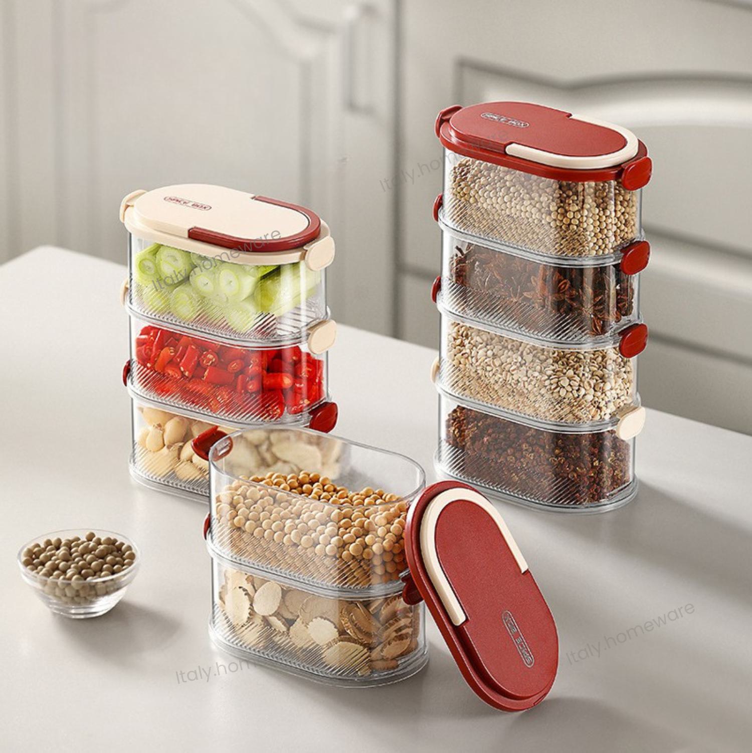 Průhledná 4úrovňová Nádoba Na Potraviny, Stohovatelná, S těsně Uzavíratelným Víkem
