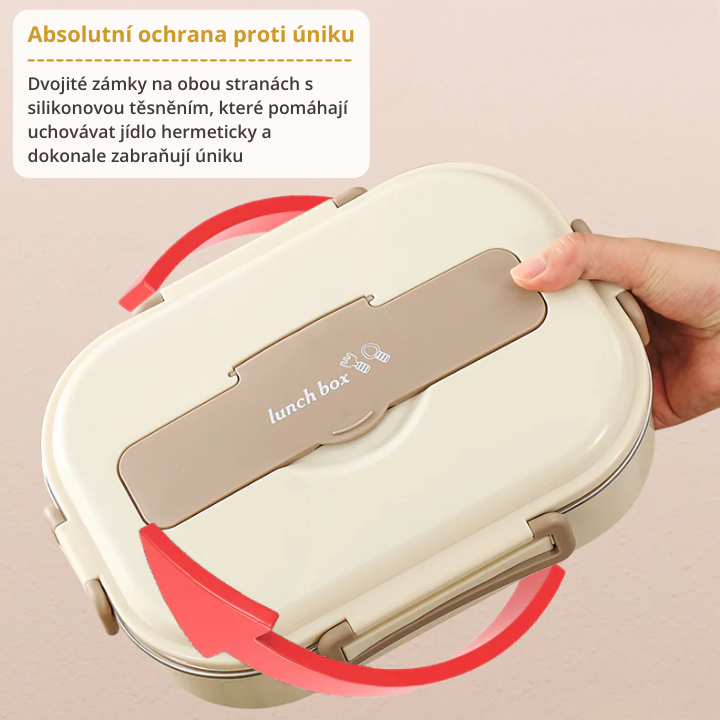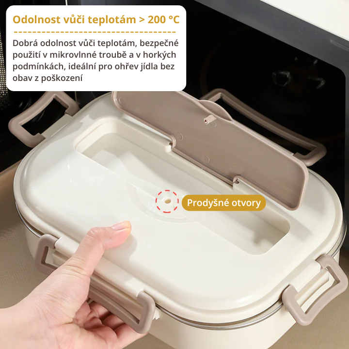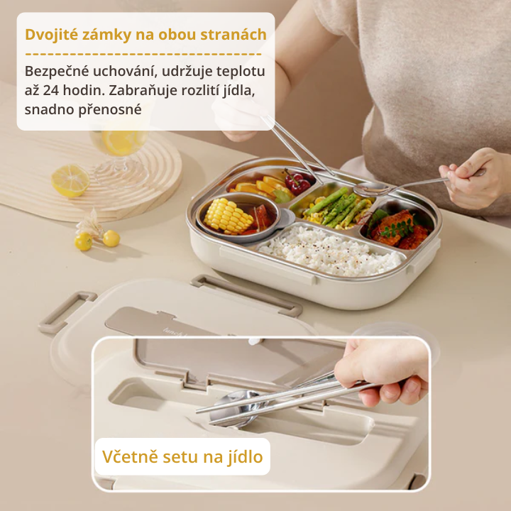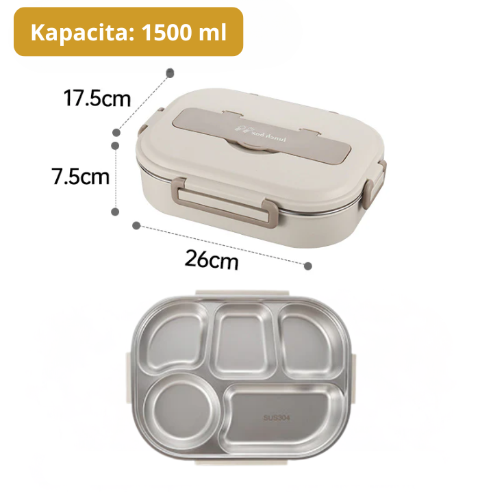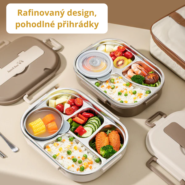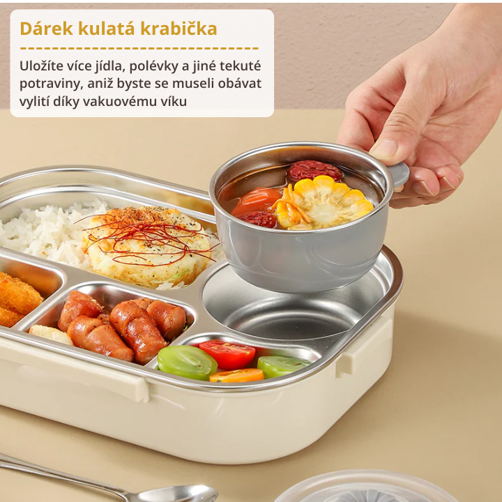 Nerezová ocelová krabička na oběd s praktickými přihrádkami, kompletní sada na jídlo, dárek navíc: 1 kulatá krabička