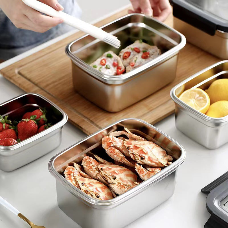 SUS304 Nádoby Na Ukládání Potravin, Obdélníkové Nerezové Tácy S Gumovými Víky (25x20x5cm)